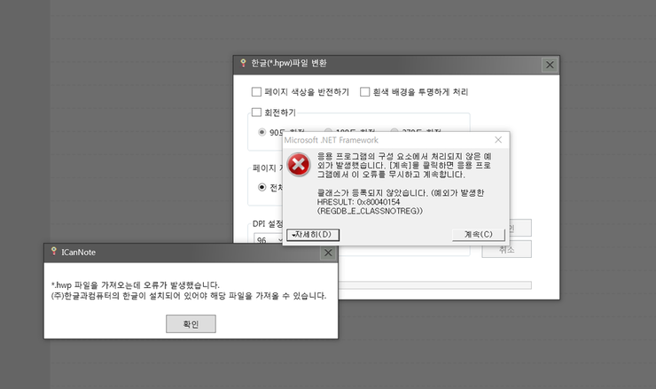 IcanNote 실행할 때마다 "사용자 정보를 확인하는 중 오류가 발생하였습니다.(Uxi-10385) 프로그램 사용에는 문제가 없으나,